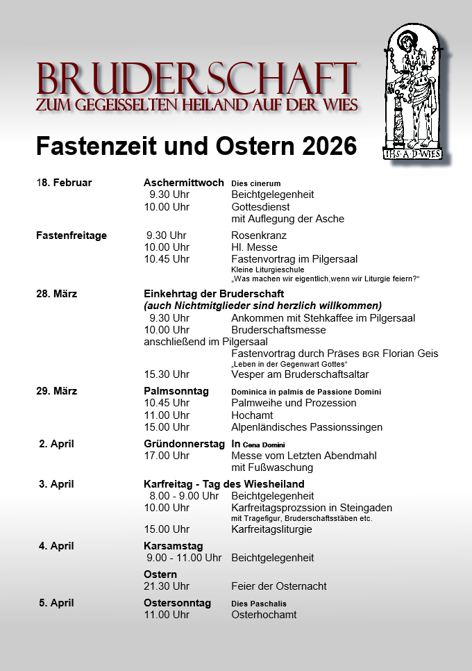 In seiner kurzen Ansprache ging der Bischof darauf ein, dass die Passion Jesu ein einziges Zeichen der Liebe sei. Jesus habe ganz menschlich eine furchtbare Passion erlitten. Aber auch heute würden viele Menschen ihrer „Passion“, also ihren Leidenschaft nachgehen und dabei manchen Rückschlag in Kauf nehmen. Jesus hingegen habe eine Passion für die Menschen gehabt und sei ihnen im Leid vollkommen gleich geworden. Gleichzeitig erinnerte er daran, dass auch die Bruderschaft von der Wieskirche eine Leidensgemeinschaft darstelle. Die Mitglieder hätten den Auftrag füreinander zu beten, und so auch ihn in seinem Dienst zu unterstützen.
